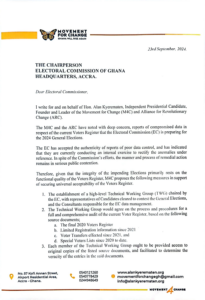 The Founder and Leader of the Movement for Change (M4C), Alan Kyerematen, is expressing concern over reports of compromised data in the 2024 Voters Register.