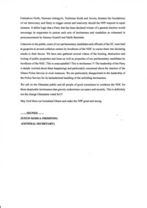 The Party urged the Ghanaian public and all people of good conscience to condemn the NDC for its lawlessness, which seriously undermines peace and security.