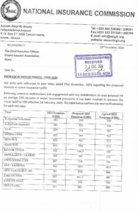 A release from the National Insurance Commission (NIC) says the increase results from extensive deliberations and engagement with key stakeholders on proposals submitted by the Ghana Insurers Association (GIA).