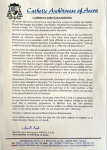 Can a devoted Catholic be a member of a Freemason? According to Most Rev John Bonaventure Kwofie, C.S.Sp.; Metropolitan Archbishop of Accra, the answer is an emphatic’ NO’.